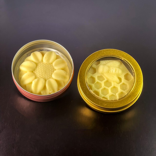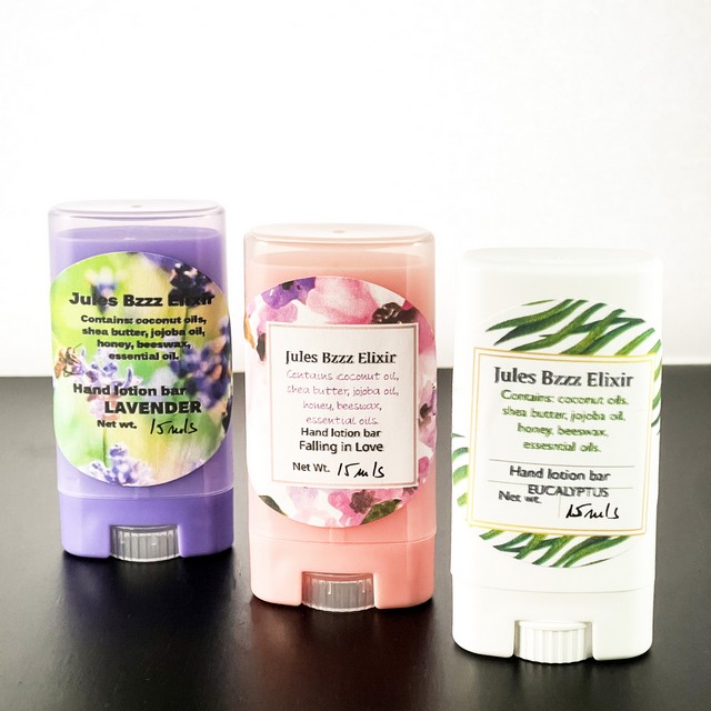 made with shea butter, coconut oil, jojoba oil, honey, 100% pure beeswax, and essential oils